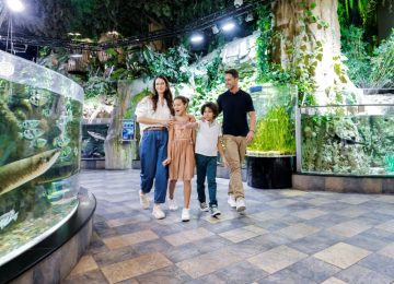 Explore fascinating exhibits featuring exotic species such as penguins, crocodiles, and rare fish in themed habitats.
