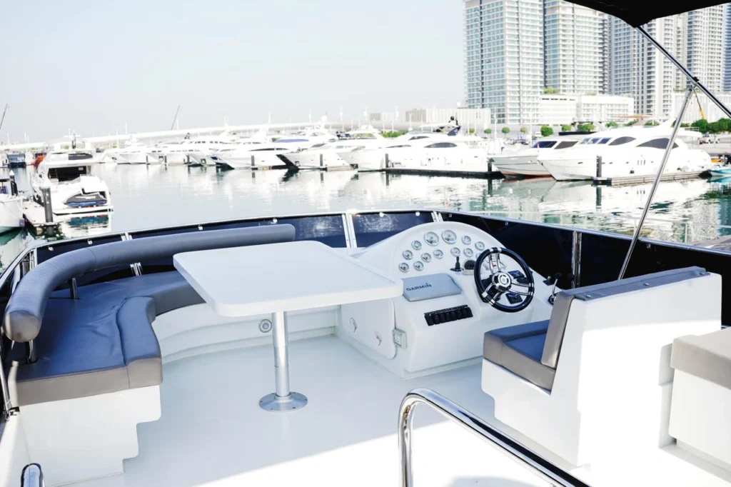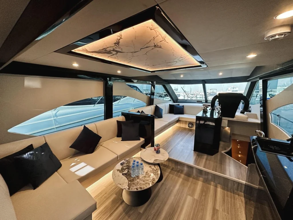 Experience refined cruising aboard the 60ft Black Fish yacht, where luxury, elegance, and comfort come together for an unforgettable journey on Dubai’s stunning waters. Featuring a spacious saloon with sophisticated interiors and a beautifully designed flybridge, this yacht offers the perfect setting for relaxing while enjoying breathtaking sightseeing views of the city’s iconic skyline. Every detail is crafted to deliver a truly luxurious and seamless yachting experience.
