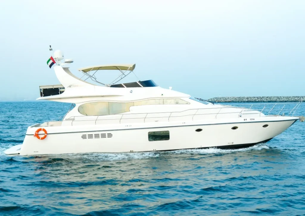 Experience unmatched luxury and elegance aboard the 71ft Mayas Yacht, the perfect choice for an unforgettable day on Dubai’s sparkling waters. Featuring a spacious saloon with stylish, modern interiors and a large flybridge with panoramic views, this yacht provides the ideal setting for relaxing, socializing, and enjoying breathtaking sightseeing along Dubai’s iconic coastline. Every detail is designed to deliver a luxurious and elegant experience.